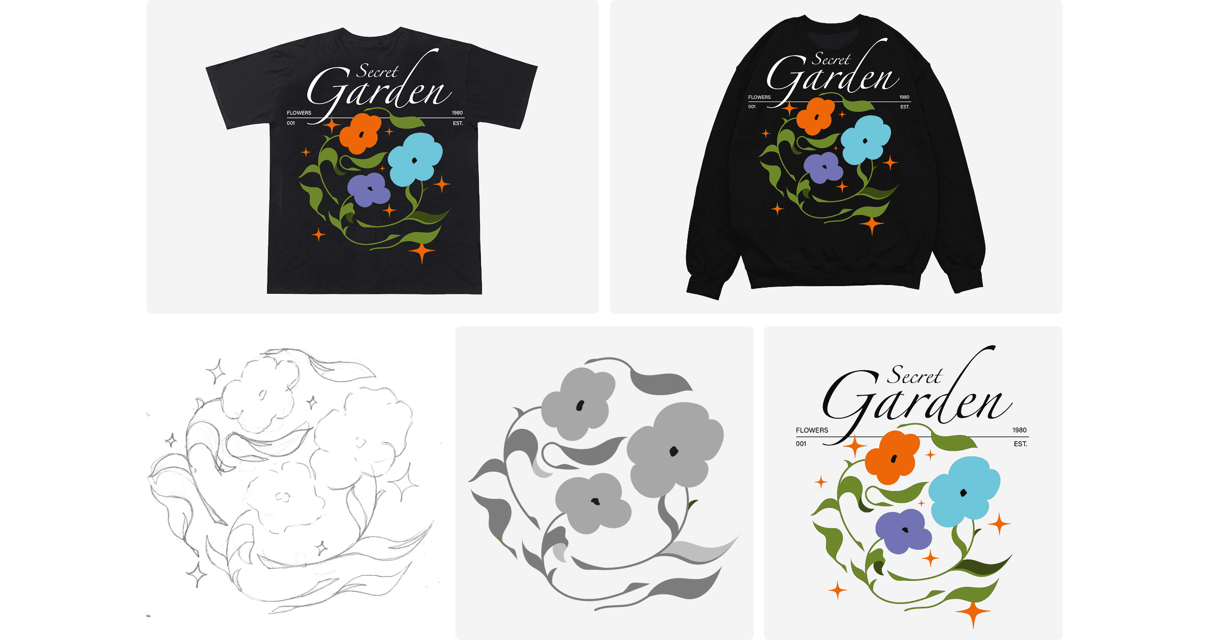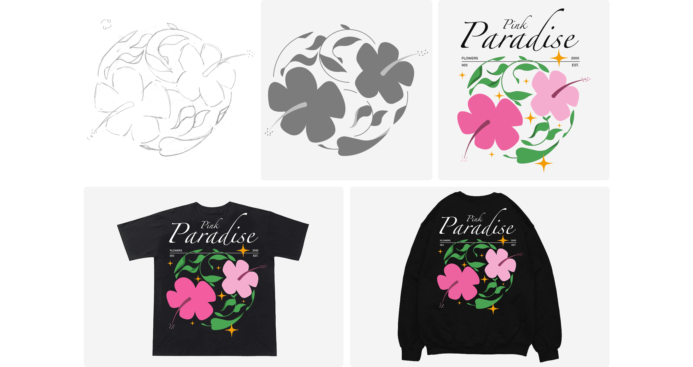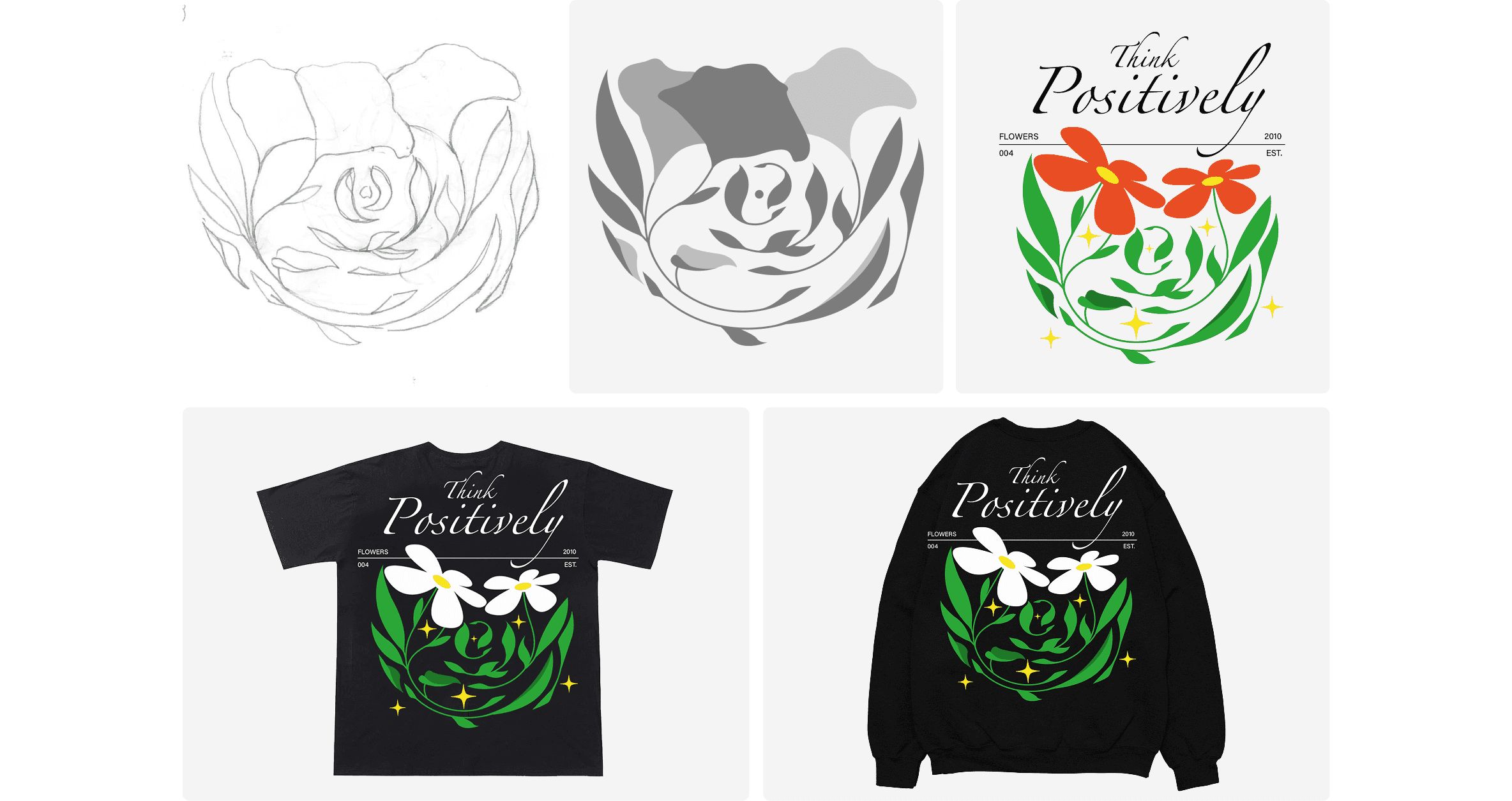 Inspirer principalement par les fleurs, j’ai fini par dessiner différentes illustrations pour pouvoir créer une collection de totalement unique.